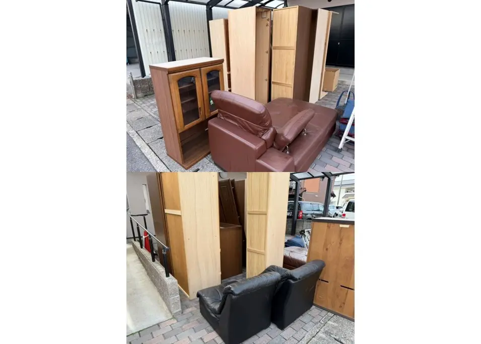 当日は担当の原田さんから事前に到着連絡があり、迷わず来てもらえるよう外で待っていました。実際に見てもらうと、婚礼タンスは階段からはほぼ通らないサイズで、分解して搬出する必要があるとの説明を受けました。ソファも大きく、搬出ルートの確認や作業の手順について細かく説明してくださったので、とても安心して任せられると感じました。見積りもその場で作成していただき、金額も明確で納得できたため、即決でお願いしました。