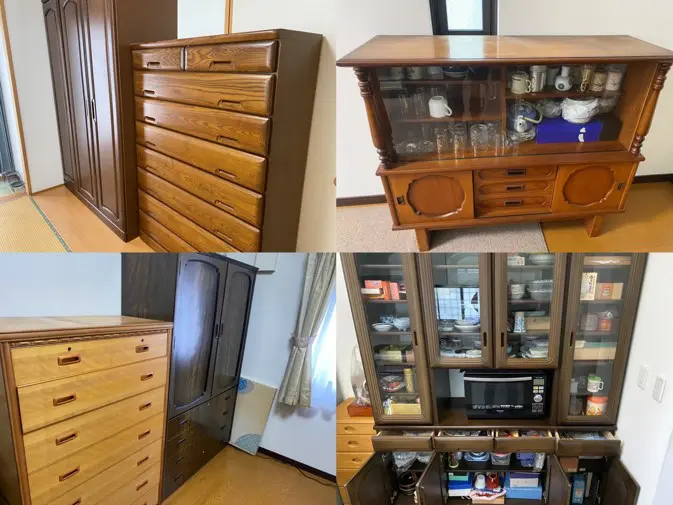 このたびは、武豊町にて一軒家の生前整理のご依頼をいただき、誠にありがとうございました。今回は、Y様よりタンス4棹とサイドボードの回収、ならびに食器棚・サイドボード内の不要な小物類の片付けをご相談いただきました。